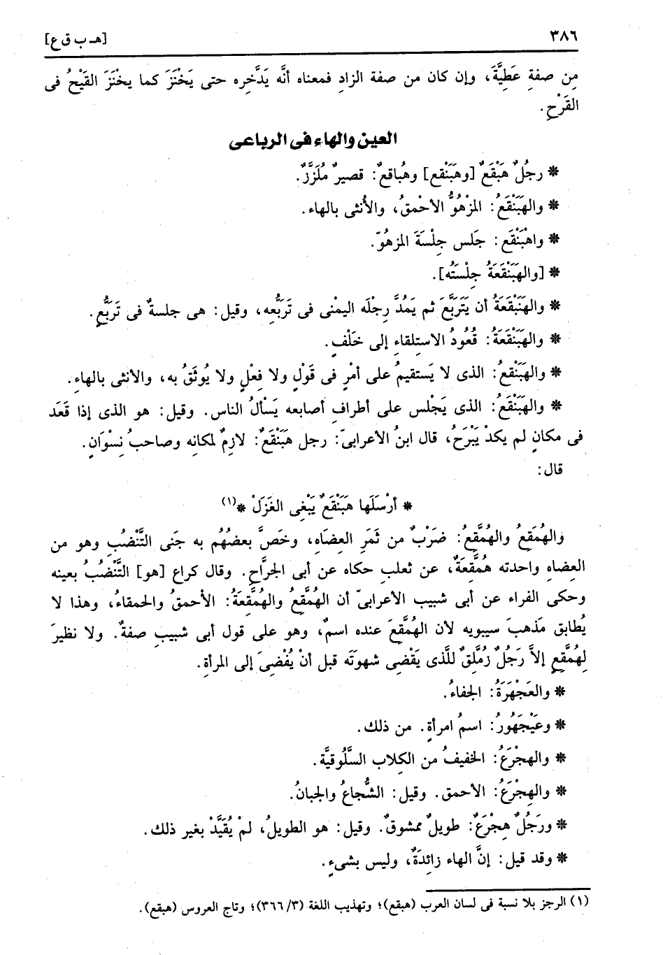 والهبنقع: المزهو الأحمق، وَالْأُنْثَى بِالْهَاءِ.