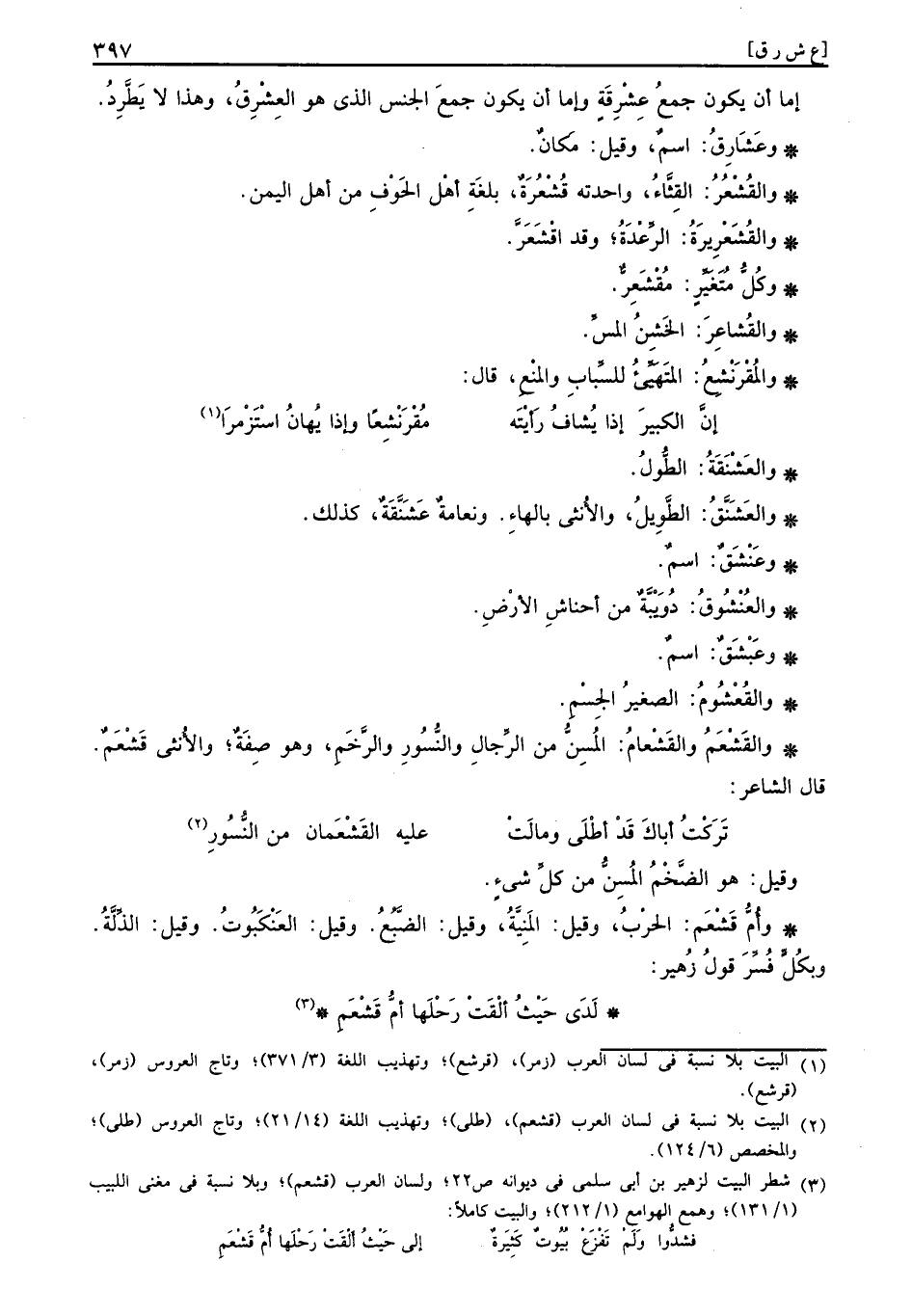 إِمَّا أَن يكون جمع عشرقة وَإِمَّا أَن يكون جمع الْجِنْس الَّذِي هُوَ العشرق، وَهَذَا لَا يطرد.