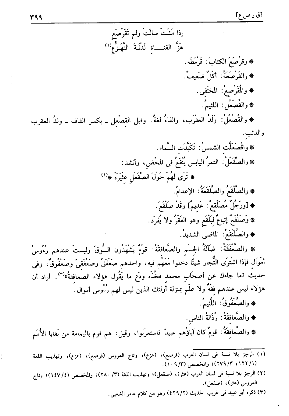 والصعافقة: قوم كَانَ آباؤهم عبيدا فاستعربوا وَقيل هُوَ قوم بِالْيَمَامَةِ من بقايا الْأُمَم