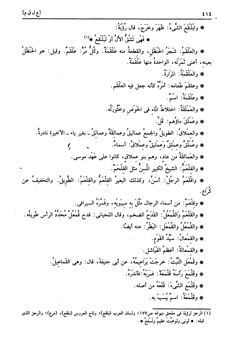 واقلعم الرجل: اسن، وَكَذَلِكَ الْبَعِير القلعم والقلعم: الطَّوِيل. وَالتَّخْفِيف عَن كرَاع وقلعم: من أَسمَاء الرِّجَال مثل بِهِ سِيبَوَيْهٍ، وَفَسرهُ السيرافي.