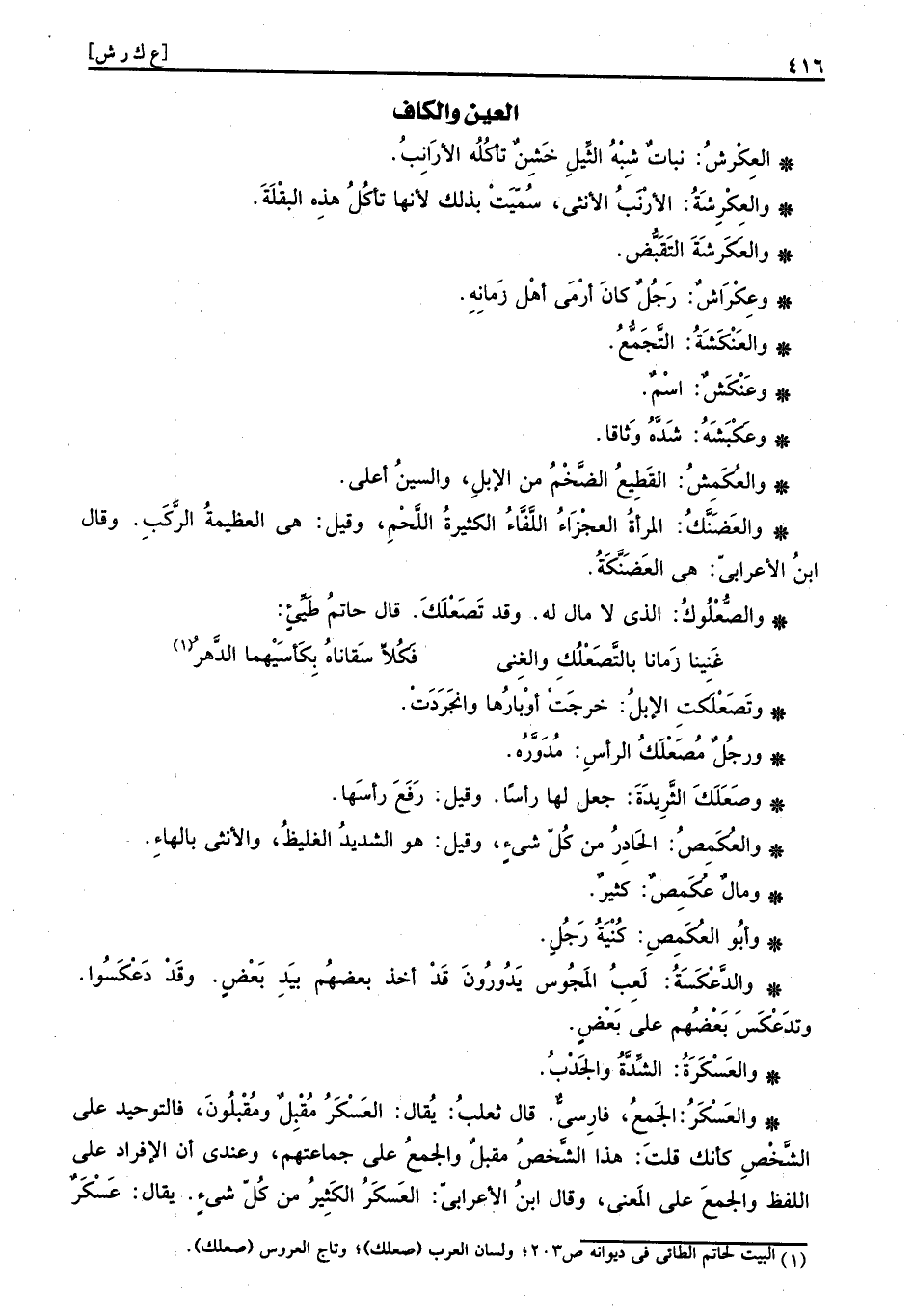 وعكراش: رجل كَانَ ارمى أهل زَمَانه. والعنكشة: التجمع.