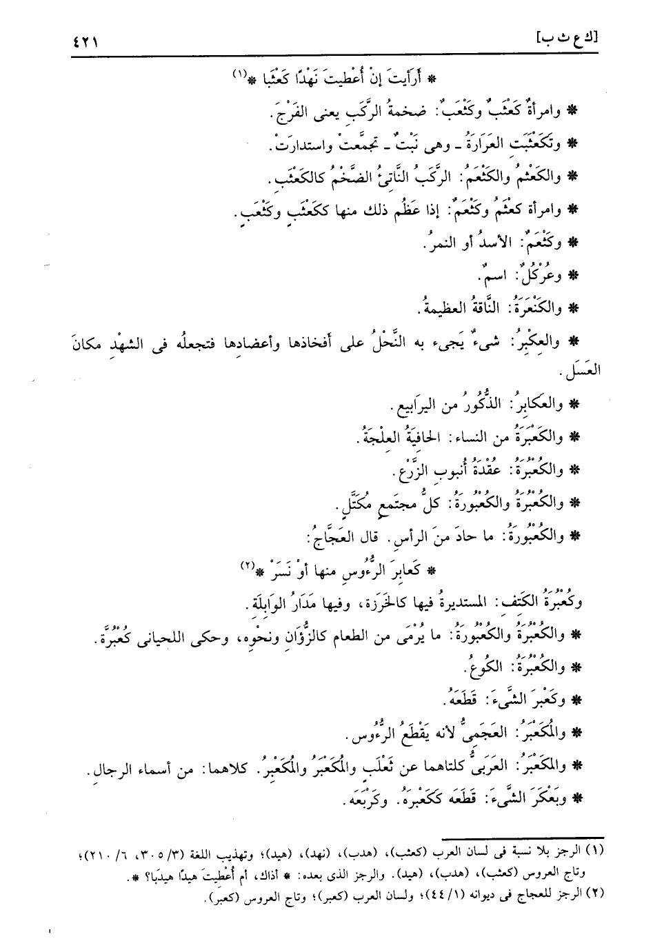 وَامْرَأَة كعثب وكثعب: ضخمة الركب يَعْنِي الْفرج.