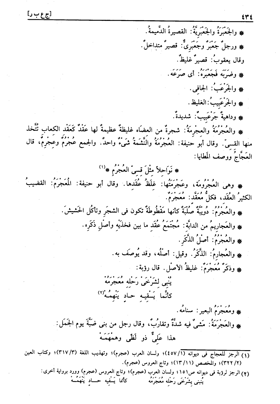 وذَكَرٌ مُعَجْرَمٌ: غليظٌ الأصْل. قَالَ رؤبة: