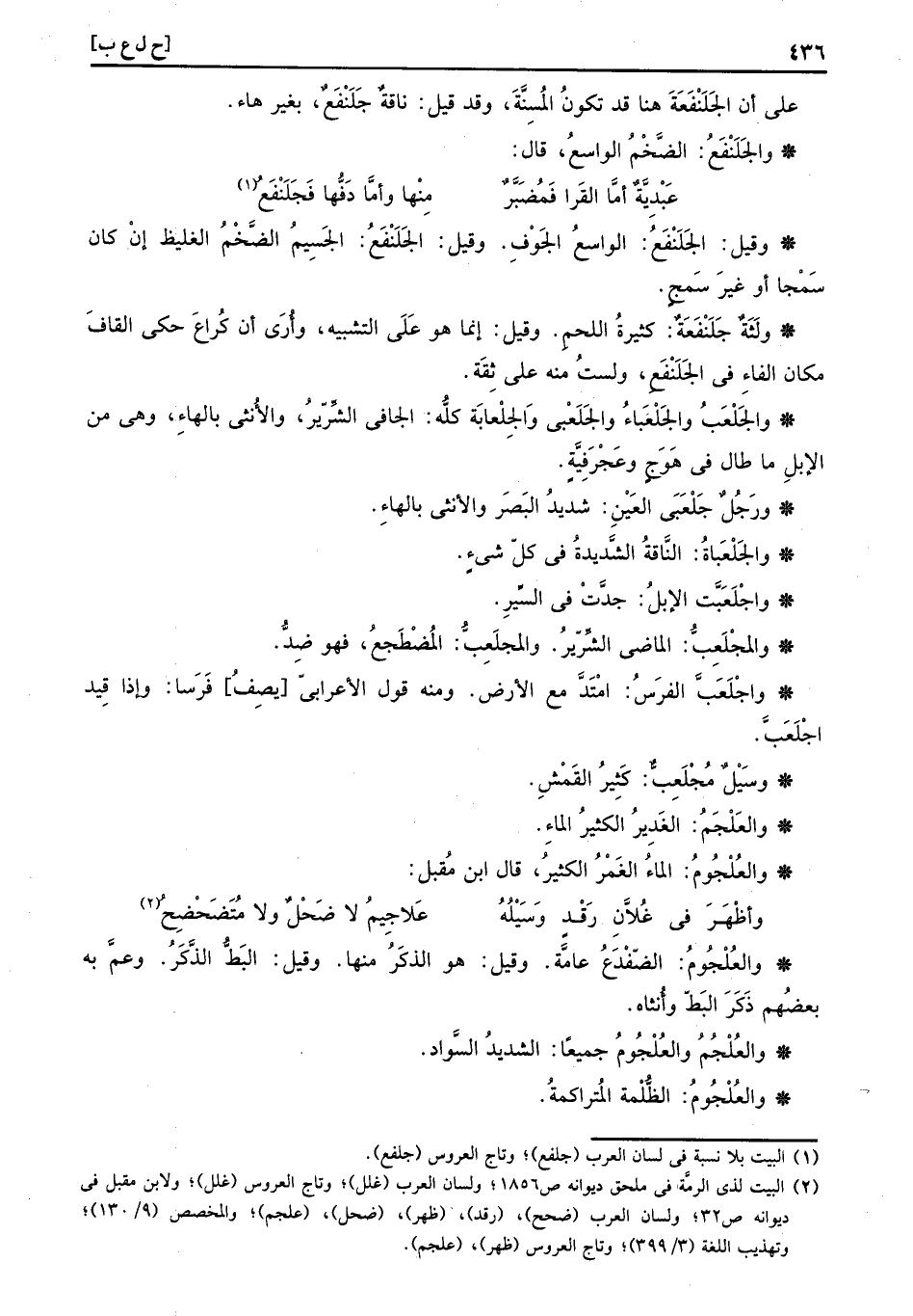 والعُلْجُومُ: الماءُ الغَمْرُ الكثيرُ، قَالَ ابْن مقبل: