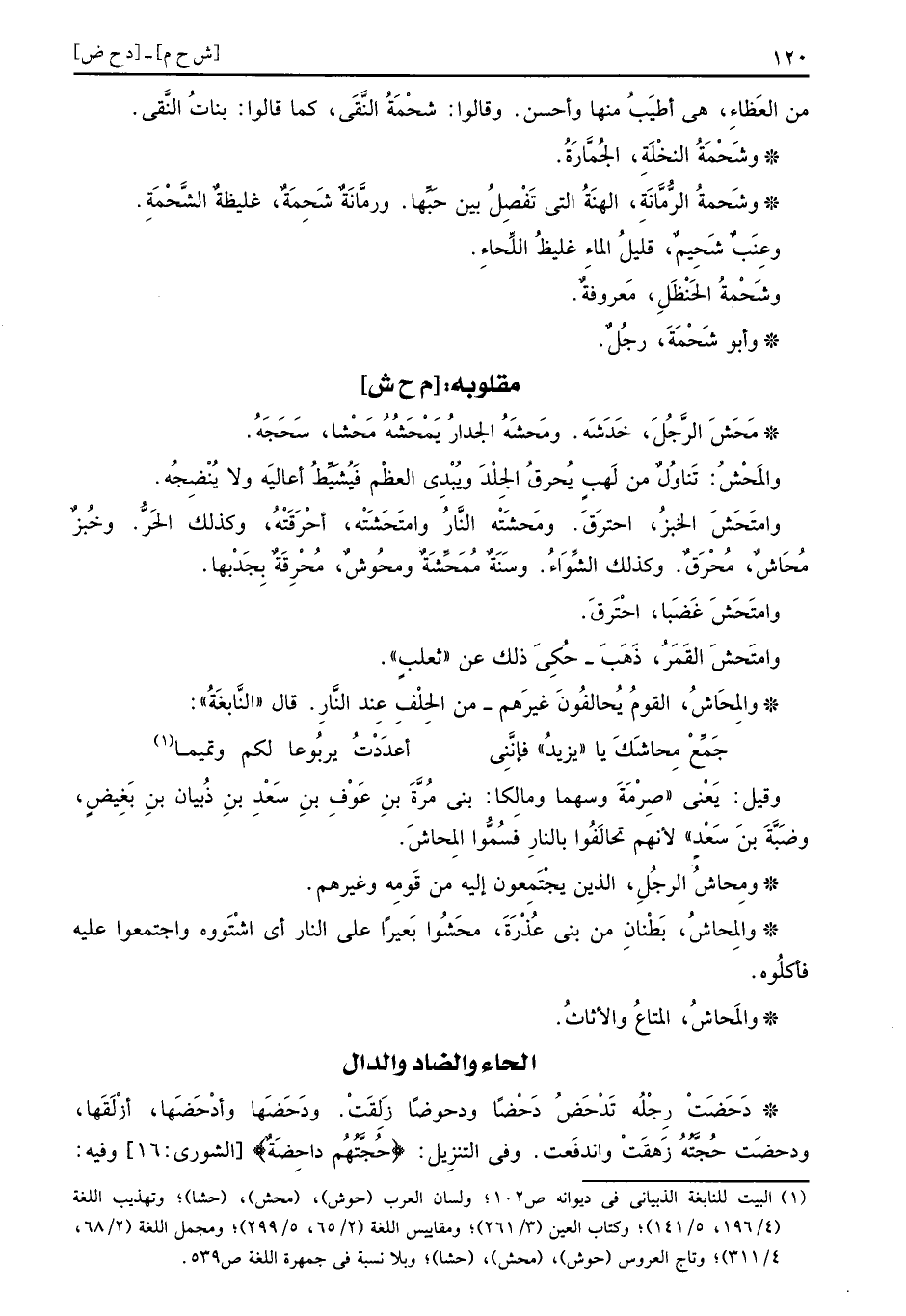 وَقيل: يَعْنِي صرمة وَسَهْما ومالكا: بني مرّة بن عَوْف بن سعد بن ذبيان بن بغيض، وضبة بن سعد لأَنهم تحالفوا بالنَّار فسموا المِحاشَ.