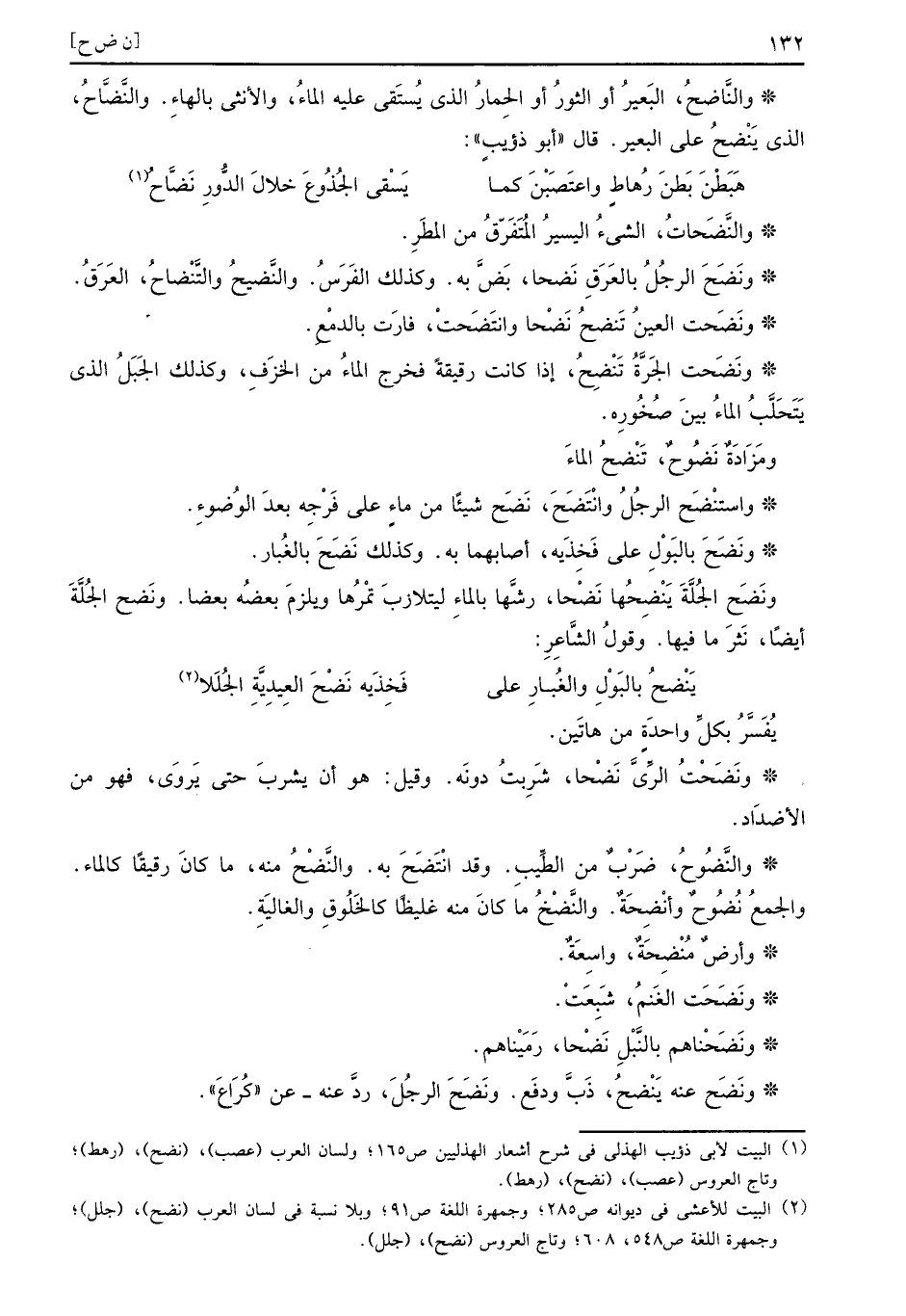 ومَزَادَةٌ نَضُوحٌ: تَنْضحُ المَاء.