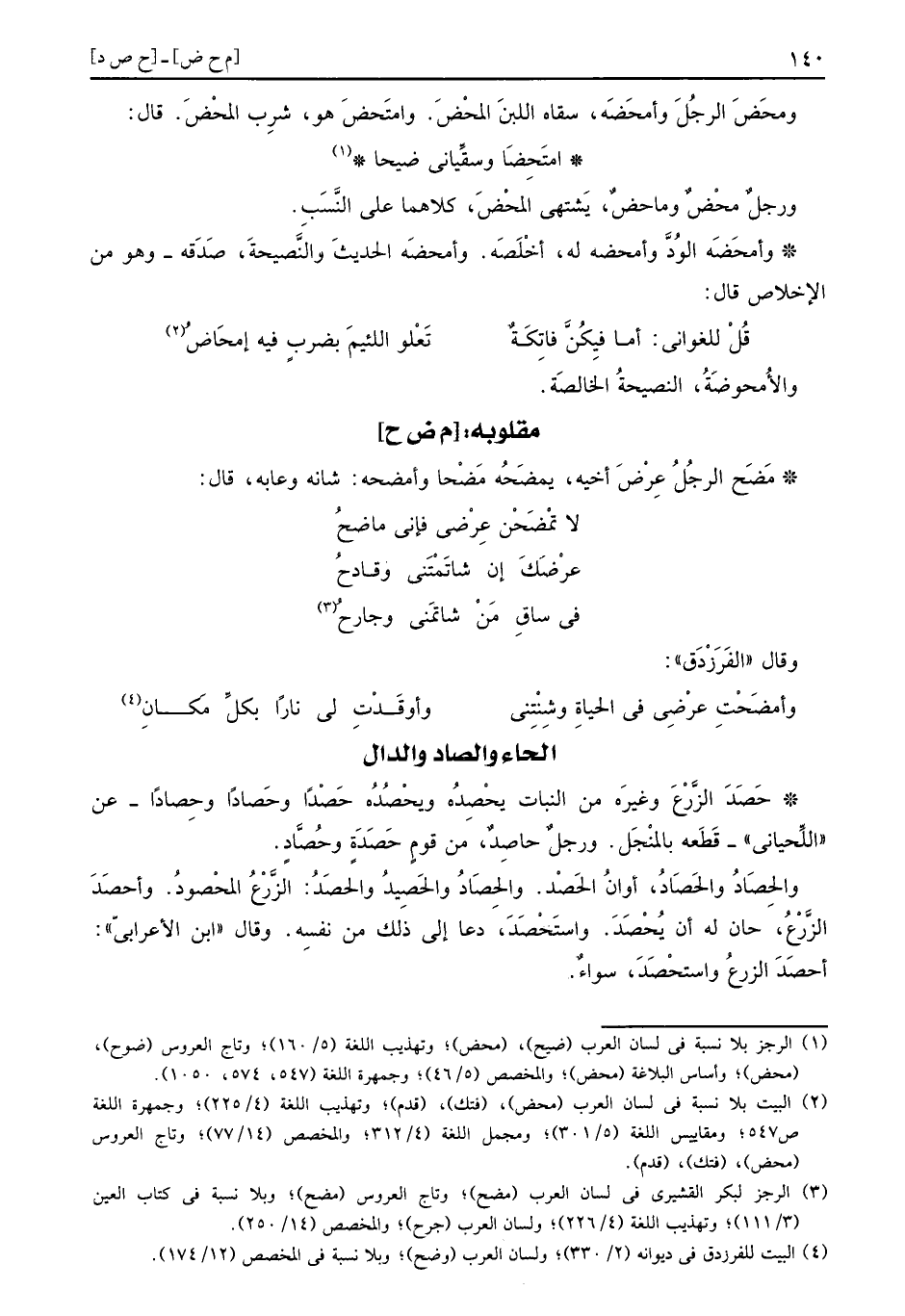 حَصَدَ الزَّرْع وَغَيره من النَّبَات يحْصِدُه ويحْصُدُه حَصْداً وحَصاداً وحِصاداً، عَن الَّلحيانيّ، قطعه بالمنجل. وَرجل حاصِدٌ، من قوم حَصَدَةٍ وحُصَّادٍ.