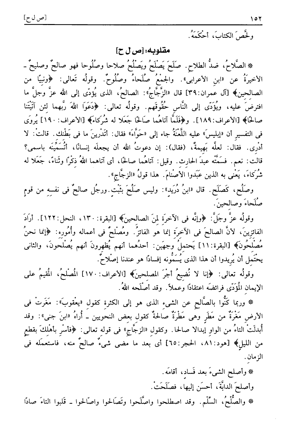 وَرُبمَا كنوا بالصَّالحِ عَن الشَّيْء الَّذِي هُوَ إِلَى الْكَثْرَة كَقَوْل يَعْقُوب: مغرت فِي الأَرْض مغرة من مطر وَهِي مطرة صالحةٌ وكقول بعض النَّحْوِيين، أرَاهُ ابْن جني: وَقد أبدلت التَّاء من الْوَاو إبدالا صَالحا. وكقول الزّجاج فِي قَوْله تَعَالَى: (فأسْرِ بأهْلِكَ بقطْعٍ من الليلِ) أَي بعد مَا مضى شَيْء صالحٌ مِنْهُ فَاسْتَعْملهُ فِي الزَّمَان.