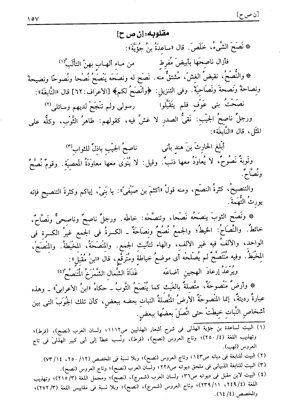 نَصَحَ الشَّيْء: خلص. قَالَ سَاعِدَة بن جؤية: