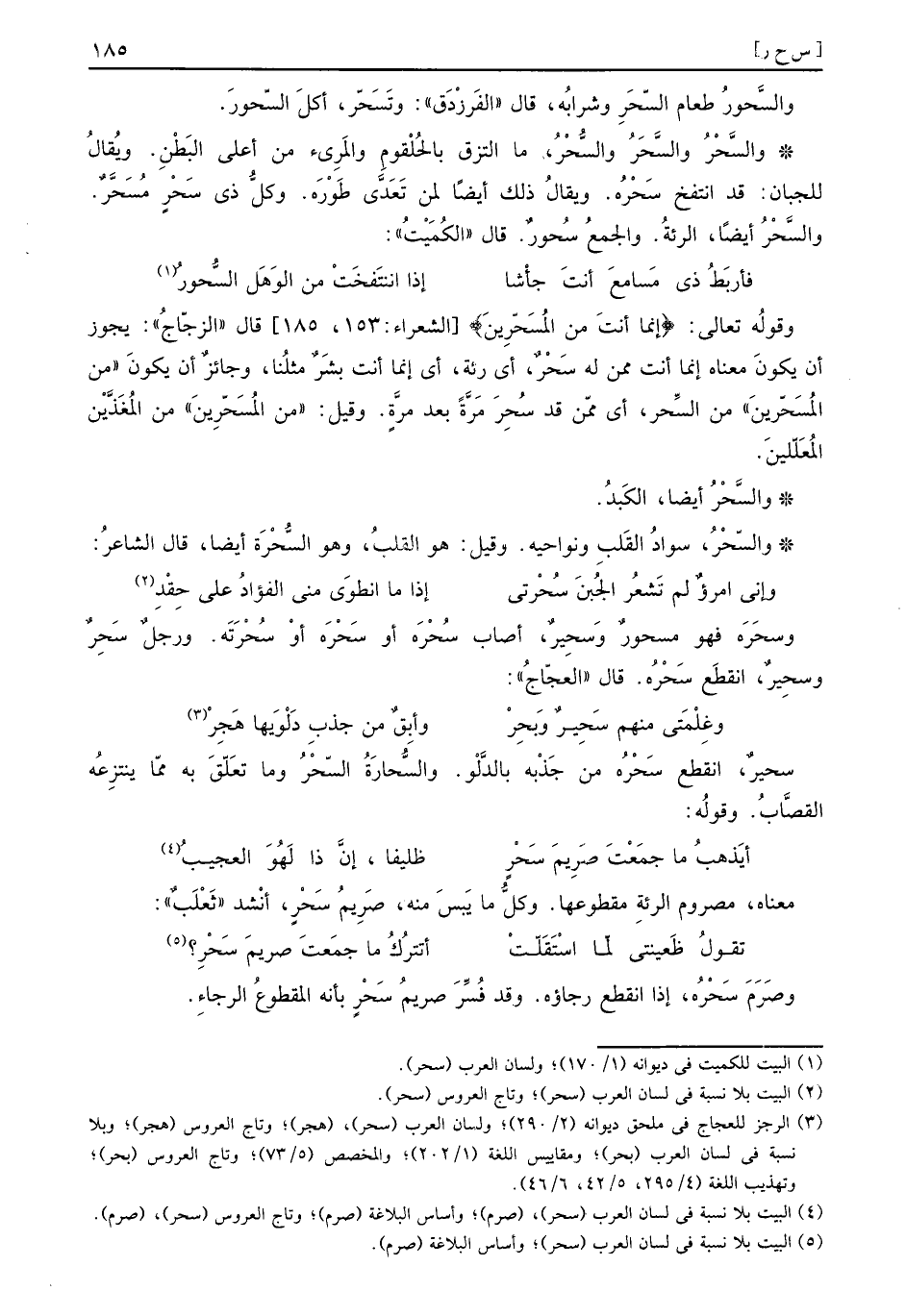 والسّحْرُ: سَواد الْقلب ونواحيه. وَقيل: هُوَ الْقلب، وَهُوَ السُّحْرَة أَيْضا، قَالَ الشَّاعِر: