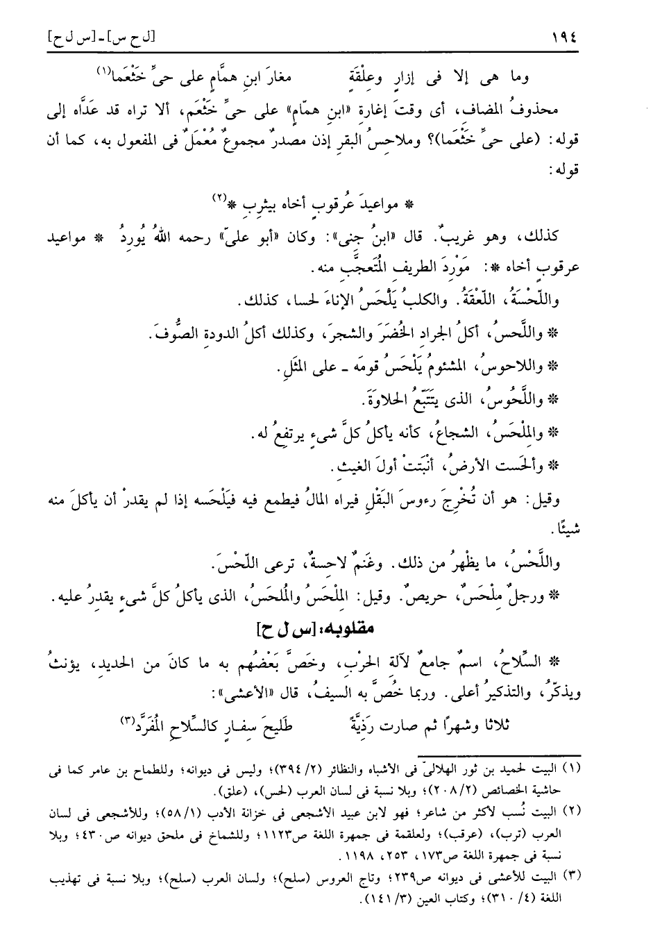 مقلوبه: (س ل ح)