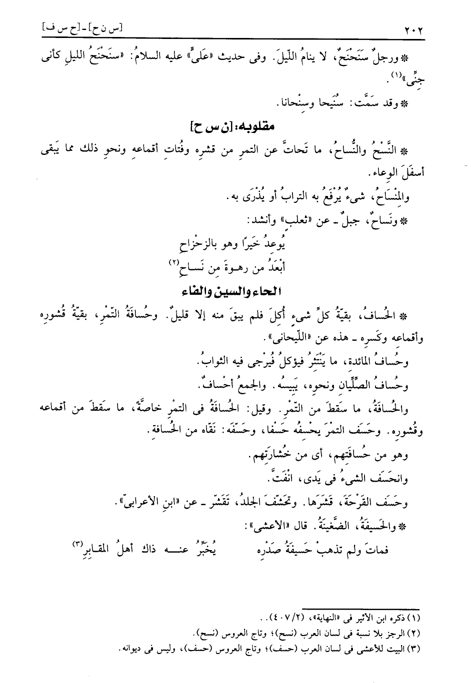 والحُسافَةُ، مَا سقط من التَّمْر. وَقيل: الحُسافَةُ فِي التَّمْر خَاصَّة، مَا سقط من أقماعه وقشوره. وحَسَف التَّمْر يحْسِفُه حَسْفا، وحَسّفَه: نقاه من الحُسافِة.