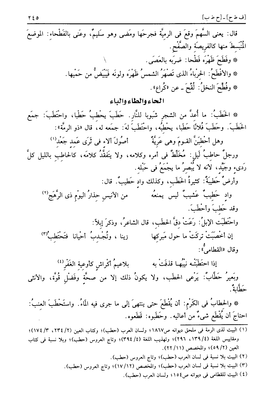وَأَرْض حَطيبَةٌ: كَثِيرَة الحَطَبِ، وَكَذَلِكَ وَاد حَطيبٌ. قَالَ: