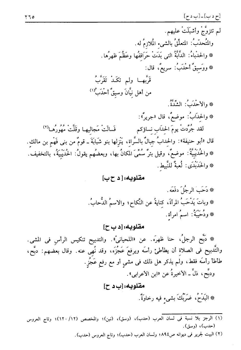 ودبَّح: ذل الْأَخِيرَة عَن ابْن الْأَعرَابِي.