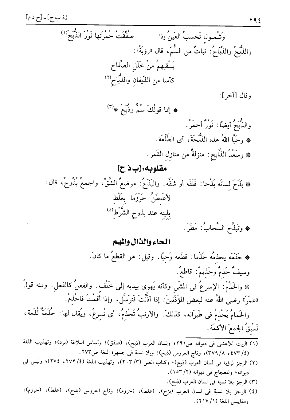 وشَمُولٍ تَحسبُ العَينُ إِذا ... صُفِّقَتْ حُمْرَتها نَوْرَ الذُّبَحْ