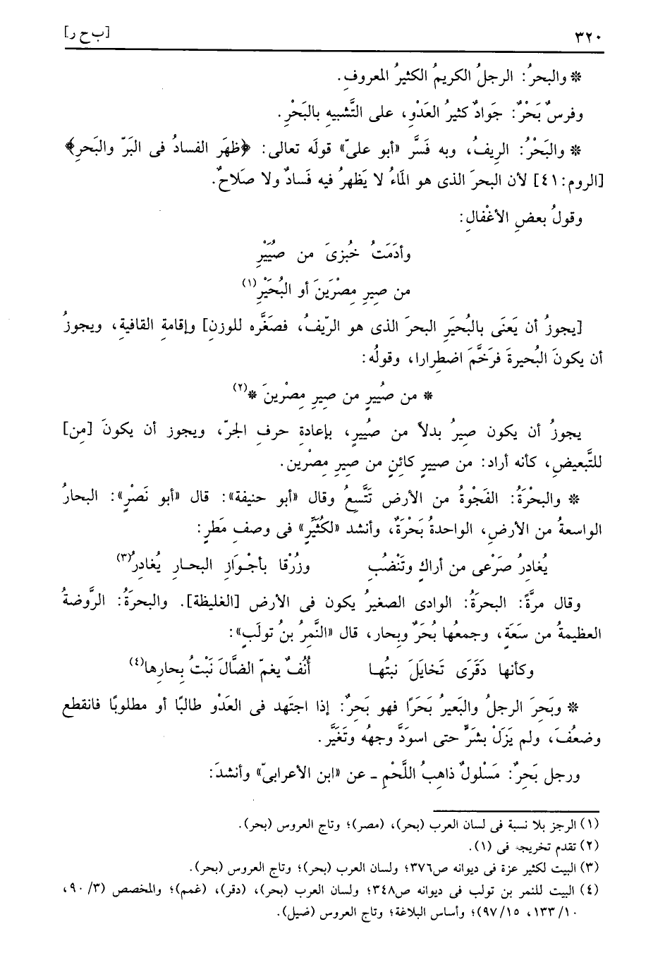 والبحُر: الرجل الْكَرِيم الْكثير الْمَعْرُوف. وَفرس بَحْرٌ: جواد كثير الْعَدو، على التَّشْبِيه بالبَحْرِ.