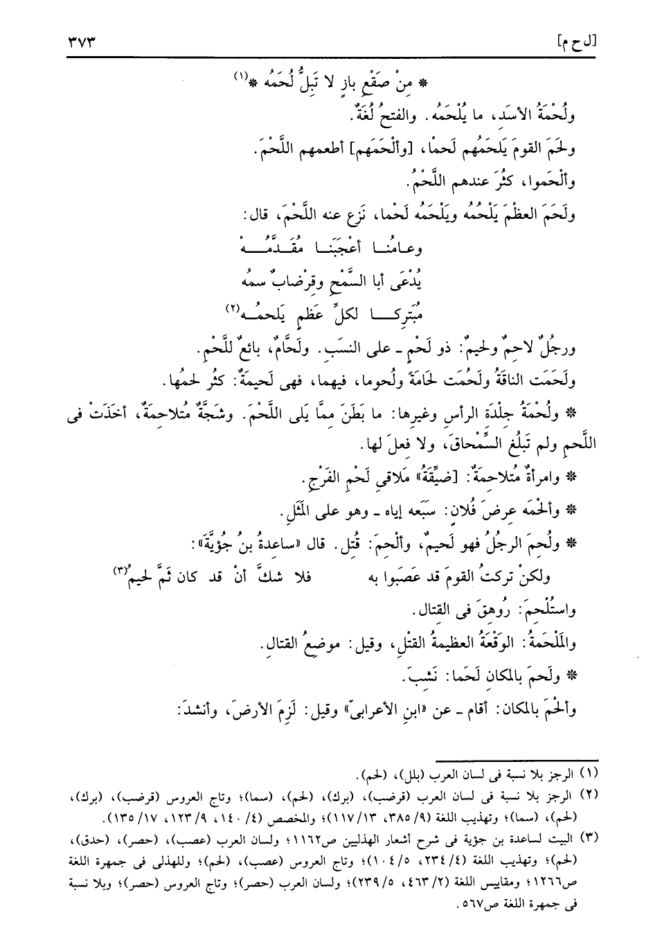 مُبَترِكا لكلِّ عَظمٍ يَلحُمه وَرجل لاحِمٌ ولحيمٌ: ذُو لَحْمٍ، على النّسَب. ولَحَّامٌ، بَائِع للَّحْمِ.