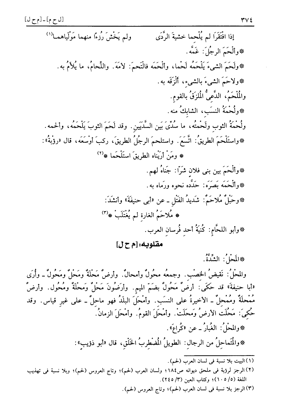 وحبل مُلاحَمٌ: شَدِيد الفتل، عَن أبي حنيفَة وَأنْشد: