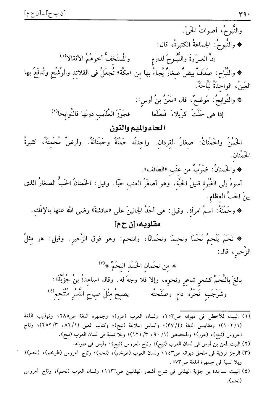 بَالغ بالنَّحَمِّ كشعر شَاعِر وَنَحْوه، وَإِلَّا فَلَا وَجه لَهُ. وَقَالَ سَاعِدَة بن جؤية: