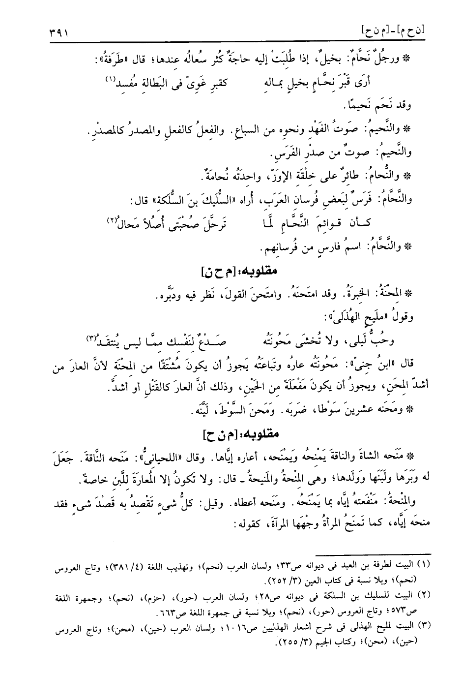 قَالَ ابْن جني: مَحُونَتُه عاره وتباعته يجوز أَن يكون مشتقا من المحنة لِأَن الْعَار من أَشد المِحَنِ، وَيجوز أَن يكون مفعلة من الحَيْنِ، وَذَلِكَ أَن الْعَار كَالْقَتْلِ أَو أَشد.