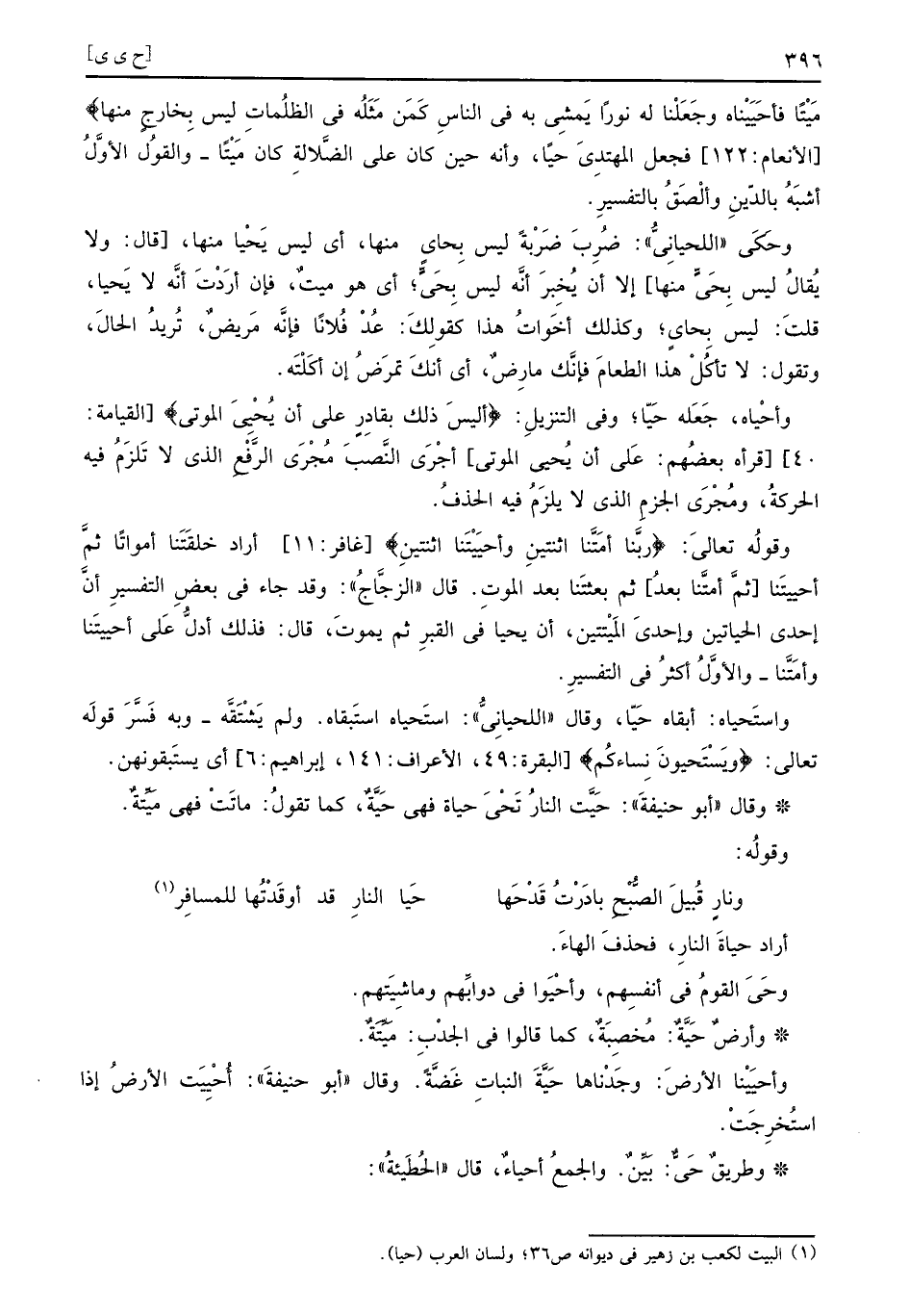 وَطَرِيق حَيٌّ: بيِّن. وَالْجمع أحياءٌ، قَالَ الحطيئة: