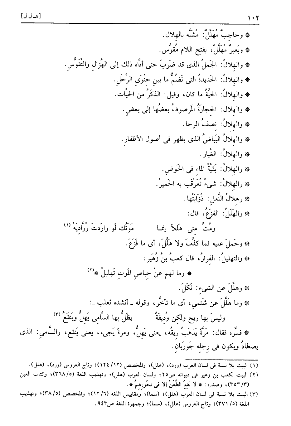 والتهليلُ: الْفِرَار، قَالَ كَعْب بن زُهَيْر: