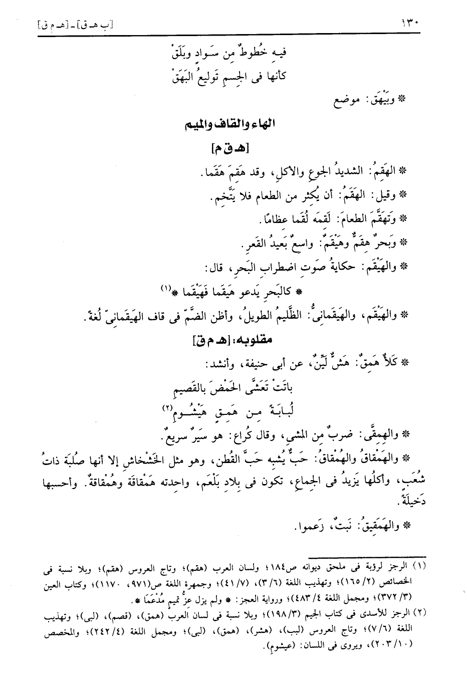 وبحر هِقَمٌّ وهَيْقَمٌ: وَاسع بعيد القعر.