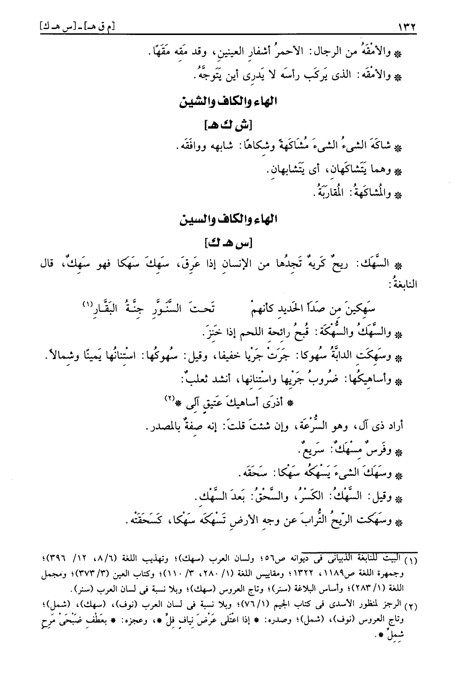وسَهِكَتِ الدَّابَّة سُهوكُا: جرت جَريا خَفِيفا، وَقيل: سُهوكُها: استنانها يَمِينا وَشمَالًا.