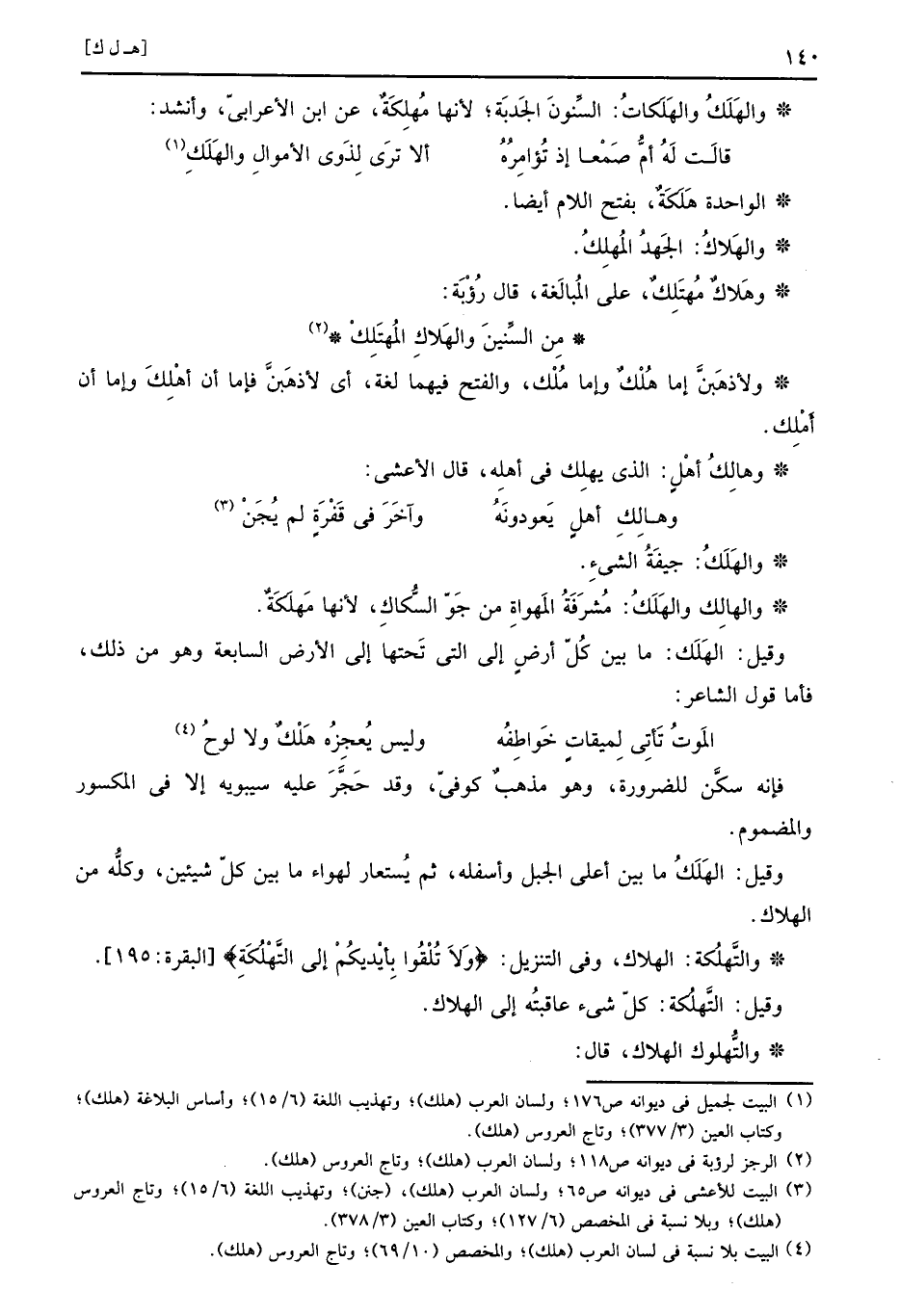 فَإِنَّهُ سكن للضَّرُورَة، وَهُوَ مَذْهَب كُوفِي، وَقد حجر عَلَيْهِ سِيبَوَيْهٍ إِلَّا المكسور والمضموم، وَقيل: الهَلَكُ مَا بَين أَعلَى الْجَبَل وأسفله، ثمَّ يستعار لهواء مَا بَين كل شَيْئَيْنِ، وَكله من الْهَلَاك.