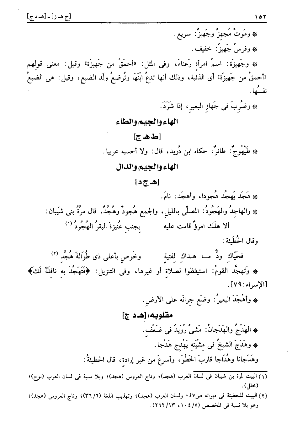 والهاجِدُ والهَجُودُ: الْمُصَلِّي بِاللَّيْلِ، وَالْجمع هُجودٌ وهُجَّدٌ، قَالَ مرّة بني شَيبَان: