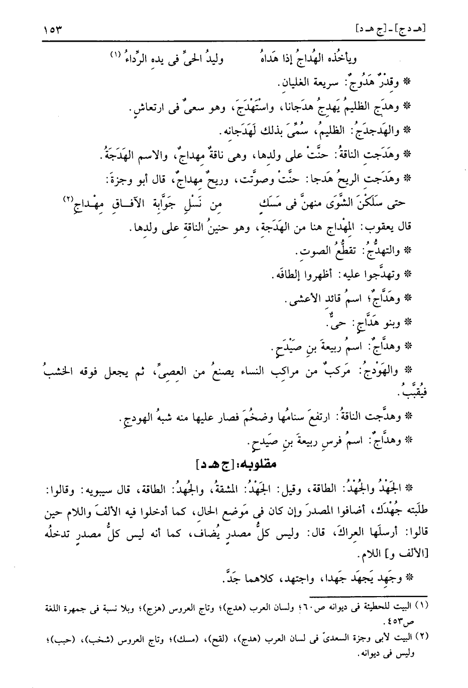 وهدَّاجٌ: اسْم فرس ربيعَة بن صيدح.
