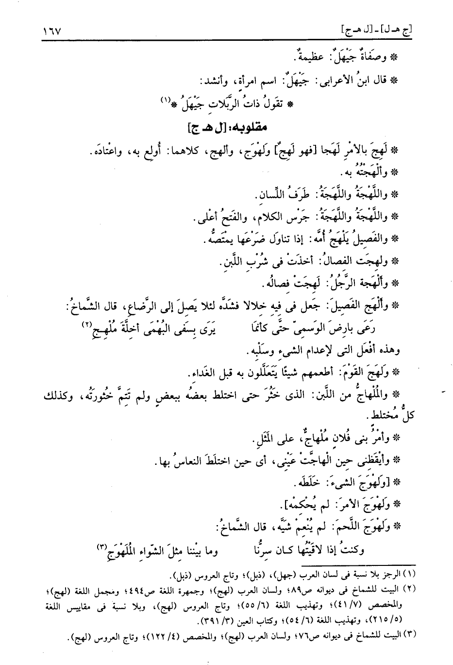 لَهِجَ بِالْأَمر لَهجا فَهُوَ لَهِجٌ ولَهْوَج، وألهج، كِلَاهُمَا: أولع بِهِ، واعتاده.