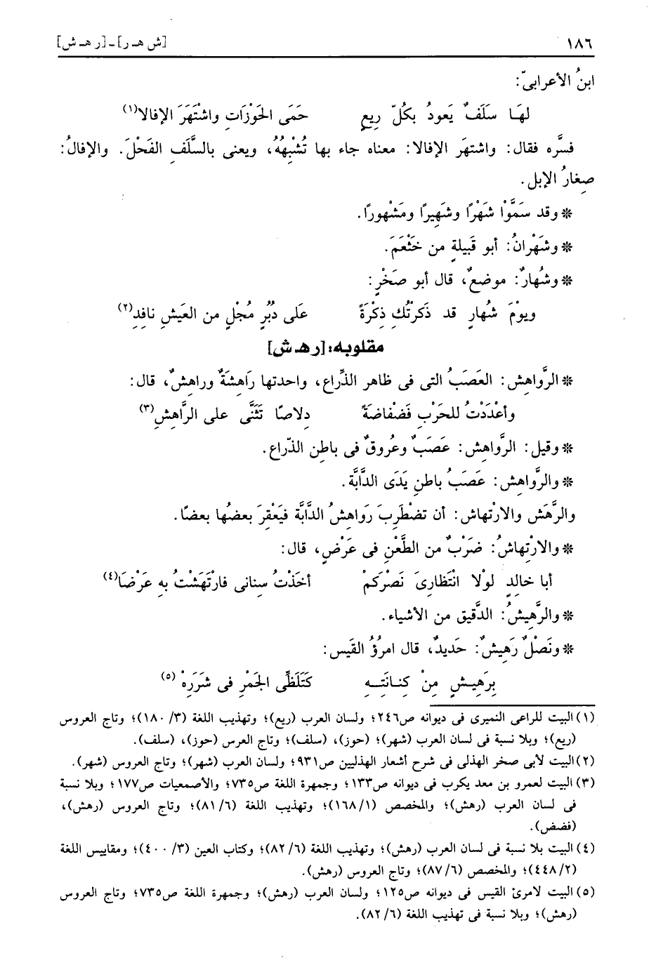 والرَّهَش والارتْهاش: أَن تضطرب رَوَاهِشُ الدَّابَّة فيعقر بَعْضهَا بَعْضًا.
