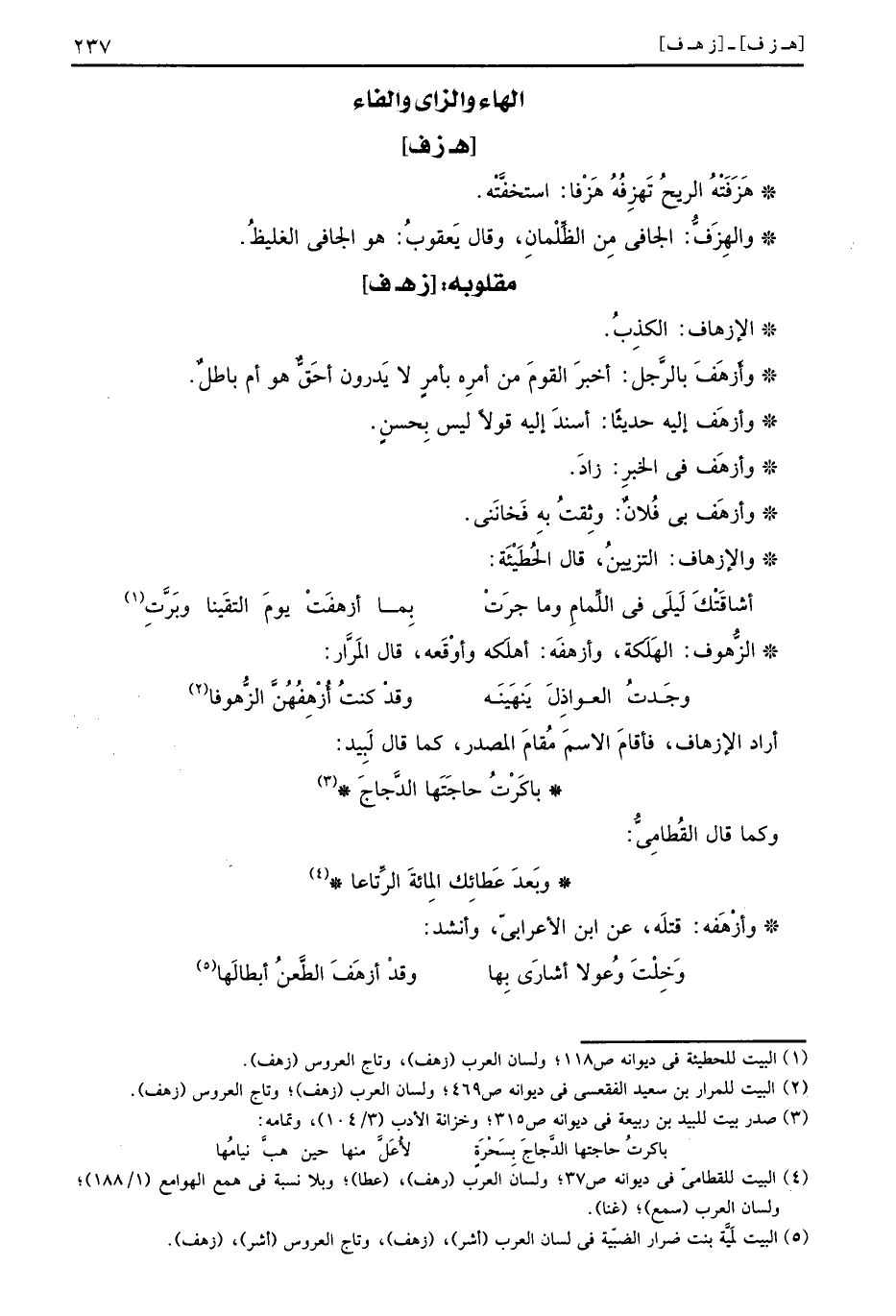 والإزهاف: التزيين، قَالَ الحطيئة:
