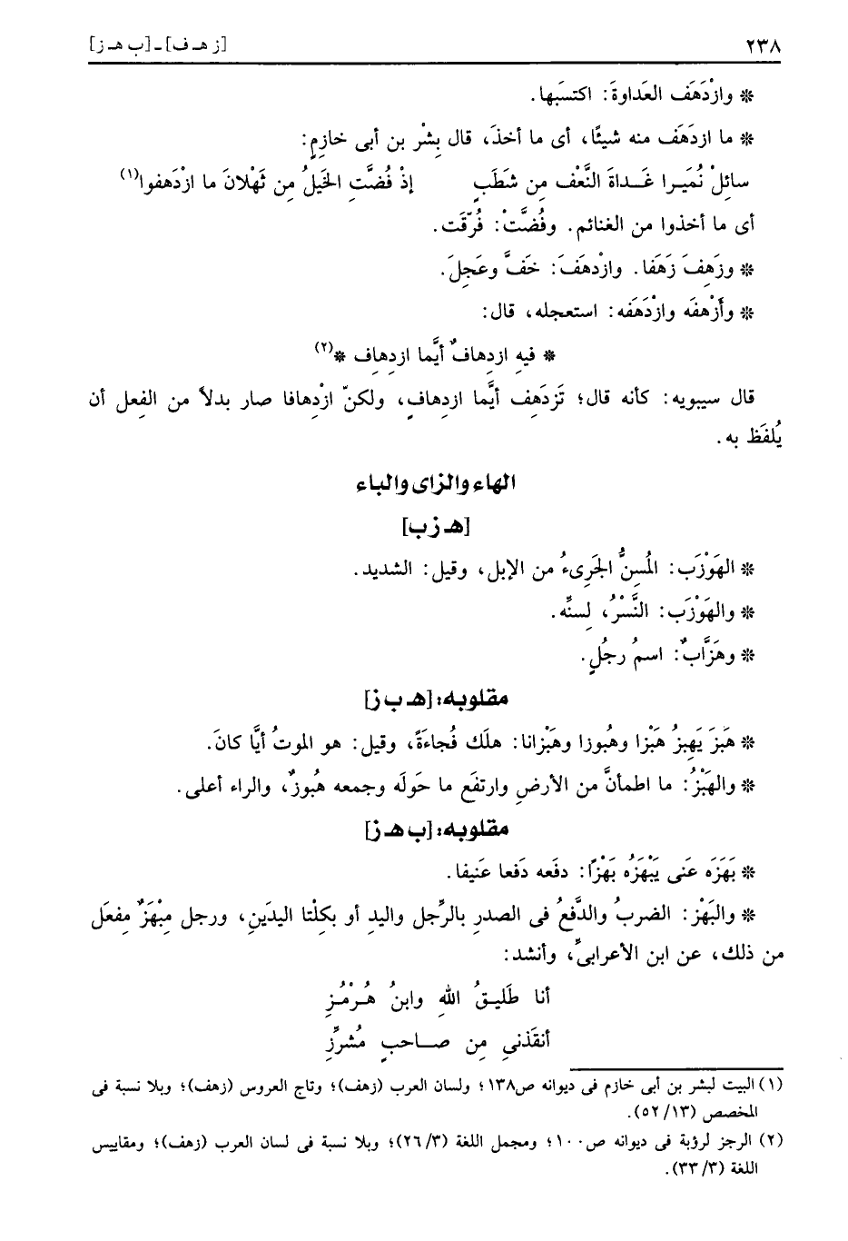 وزَهِفَ زَهَفا. وازْدهَفَ: خف وَعجل.
