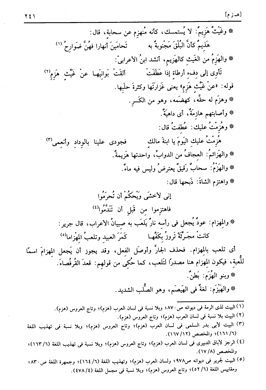 والمِهزام: عود يَجْعَل فِي رَأسه نَار يلْعَب بِهِ صبيان الْأَعْرَاب، قَالَ جرير: