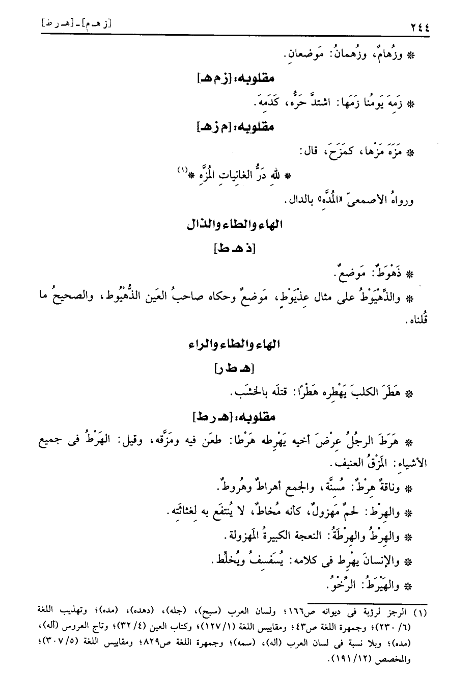 وناقة هِرْطٌ: مُسِنَّة، وَالْجمع أهراطٌ وهُروطٌ.