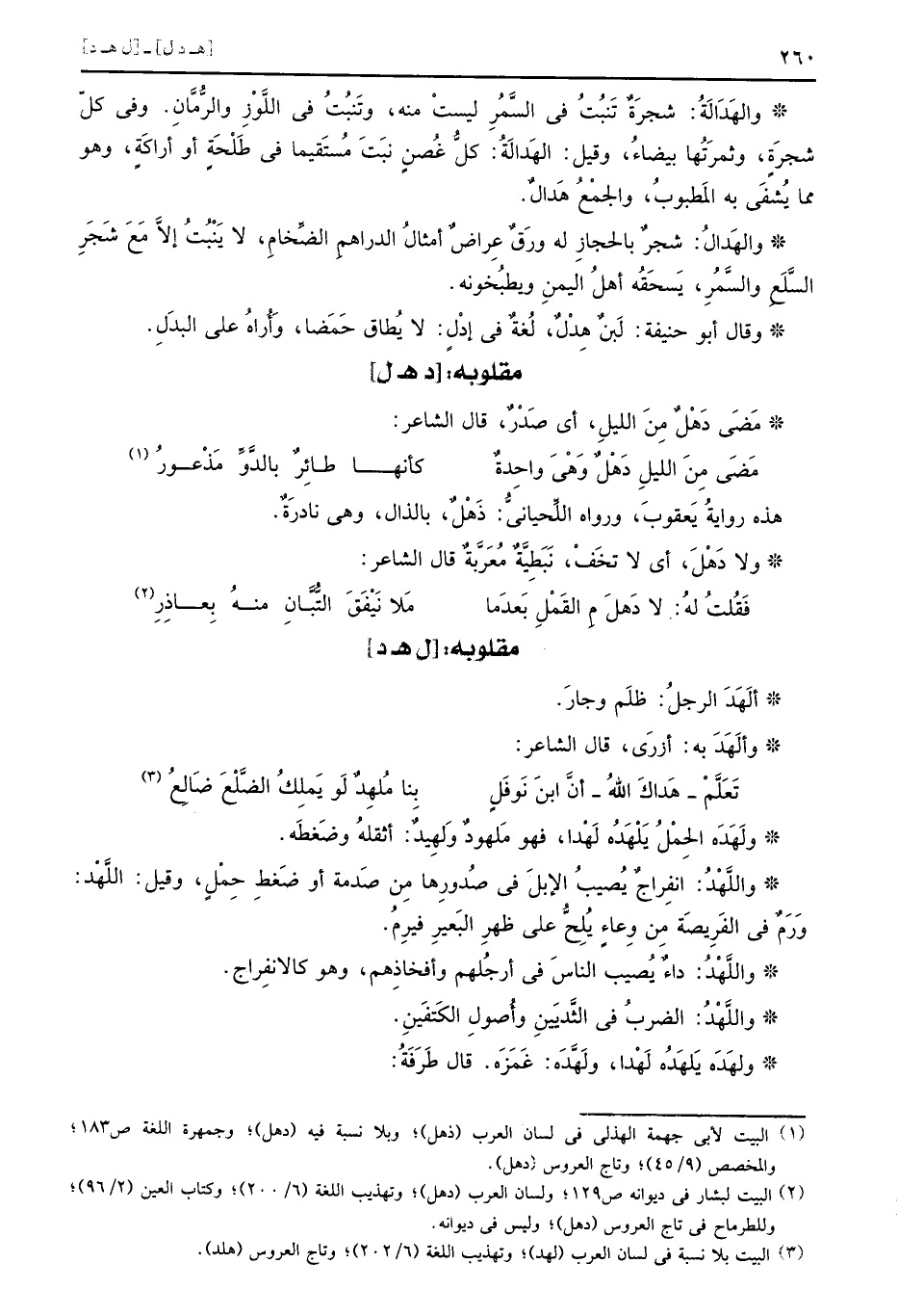 والهَدالُ: شجر بالحجاز لَهُ ورق عراض أَمْثَال الدَّرَاهِم الضخام، لَا ينْبت إِلَّا مَعَ شجر السّلع والسمر، يسحقه أهل الْيمن ويطبخونه.