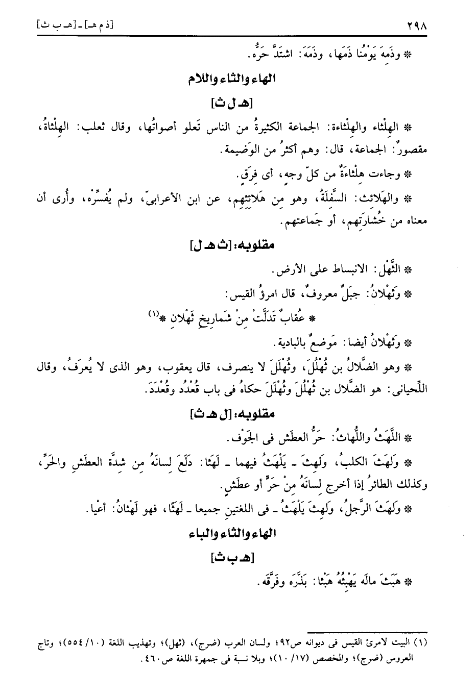 والهَلائِث: السفلة، وَهُوَ من هلائثهم، عَن ابْن الْأَعرَابِي، وَلم يفسره، وَأرى أَن مَعْنَاهُ من خشارتهم، أَو جَمَاعَتهمْ.