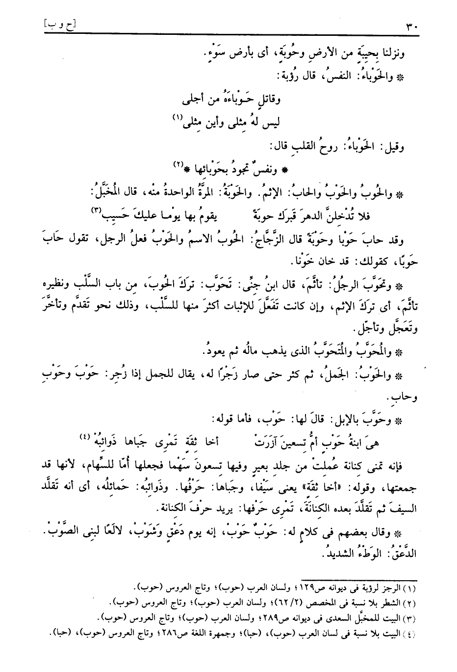 والحُوبُ والحَوْبُ والحابُ: الْإِثْم. والحَوْبَةُ: الْمرة الْوَاحِدَة مِنْهُ، قَالَ المخبل: