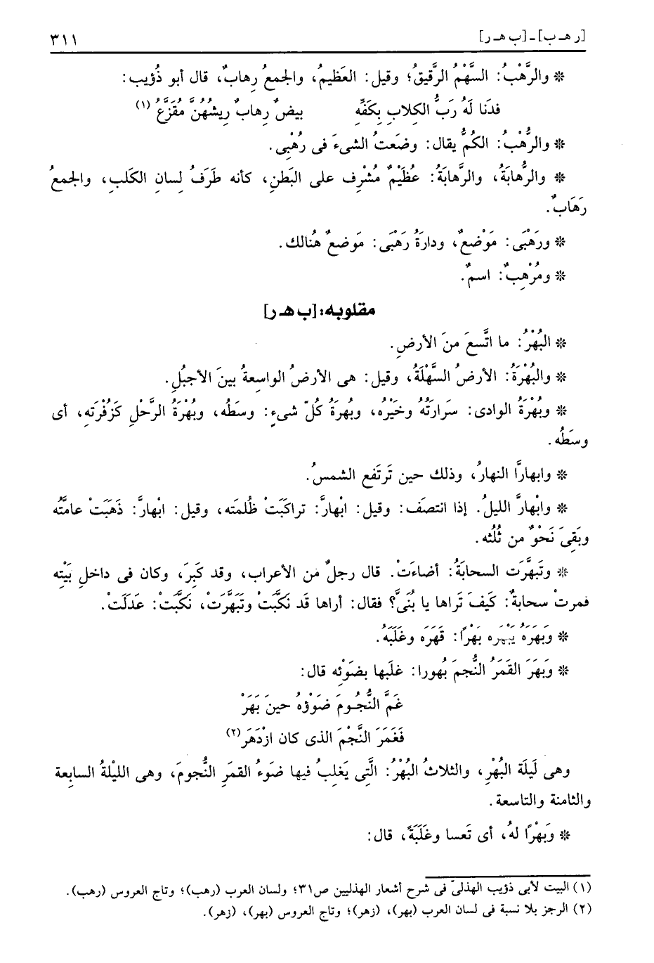 وبَهَرَ الْقَمَر النُّجوم بُهورا: غلبها بضوئه قَالَ: