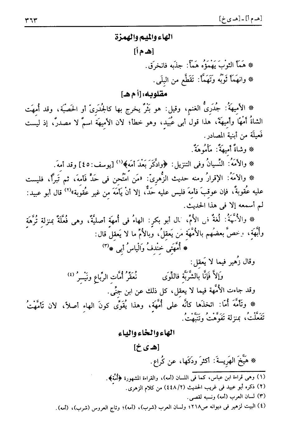 وتَأَمَّهَ أُمًّا: اتخذها كَأَنَّهُ على أُمَّهَةٍ، وَهَذَا يقوى كَون الْهَاء أصلا، لِأَن تَأمَّهْتُ تَفَعَّلْتُ، بِمَنْزِلَة تَفَوَّهْتُ وتَنَبَّهْتُ.