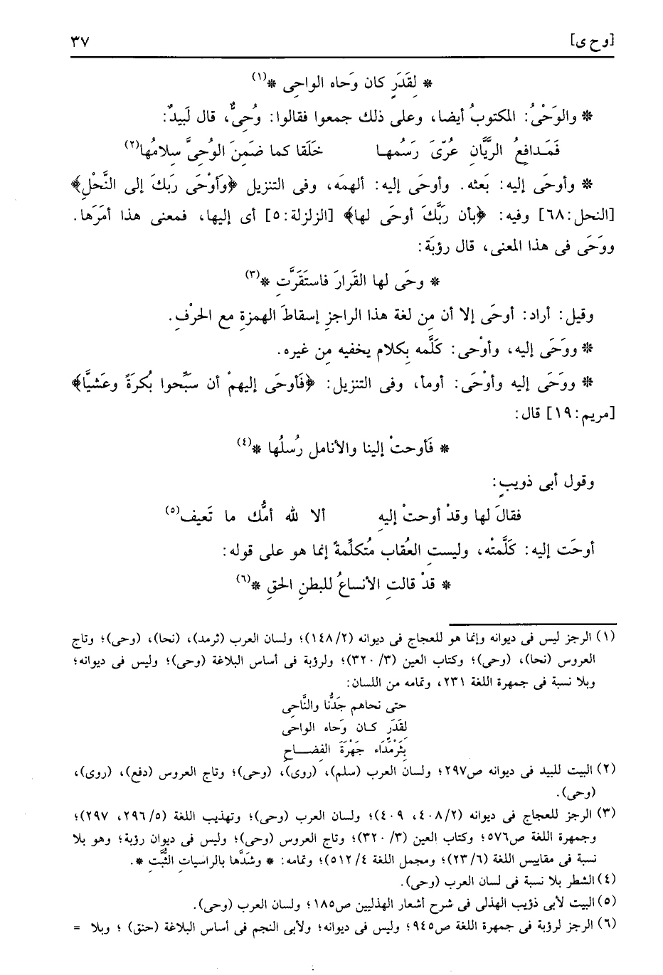 والوَحْيُ: الْمَكْتُوب أَيْضا، وعَلى ذَلِك جمعُوا فَقَالُوا: وحيٌ، قَالَ لبيد:
