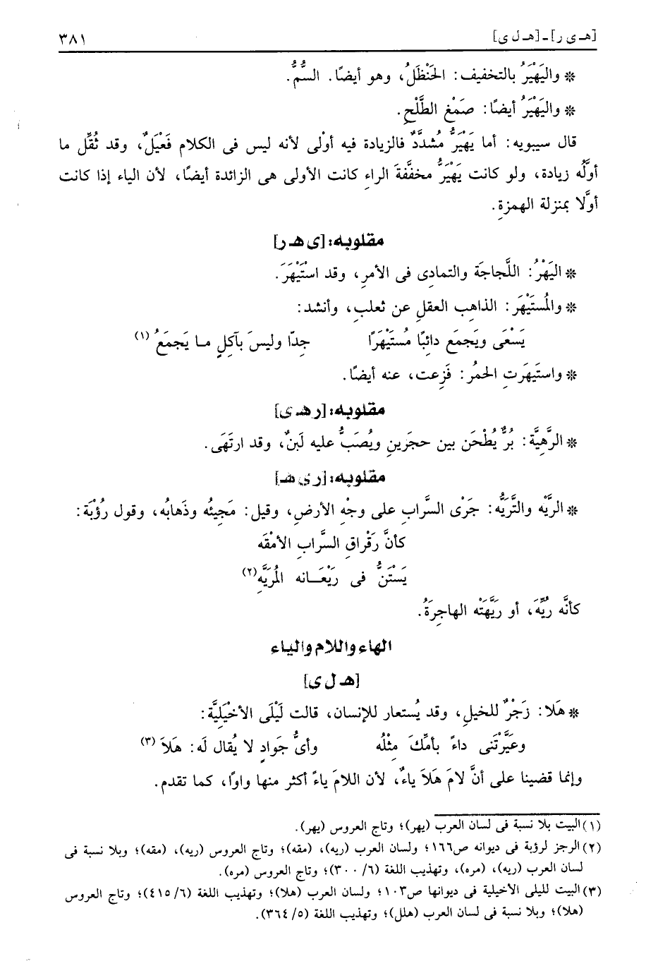 وَإِنَّمَا قضينا على أَن لَام هَلاَ يَاء، لِأَن اللَّام يَاء أَكثر مِنْهَا واوا، كَمَا تقدم.