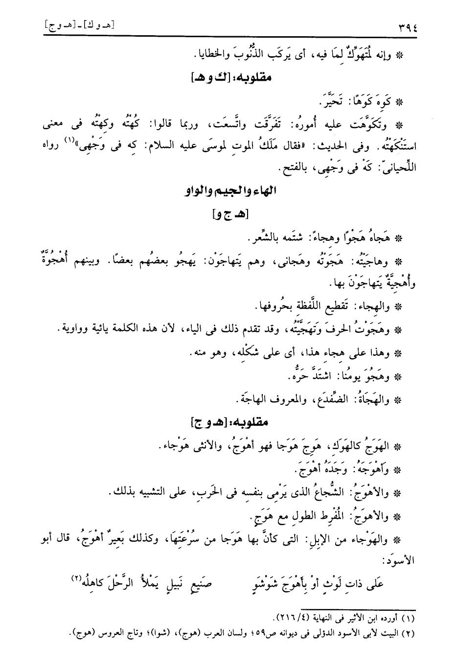 وهَجَوْتُ الْحَرْف وتَهَجَّيْتُه، وَقد تقدم ذَلِك فِي الْيَاء، لِأَن هَذِه الْكَلِمَة يائية وواوية.