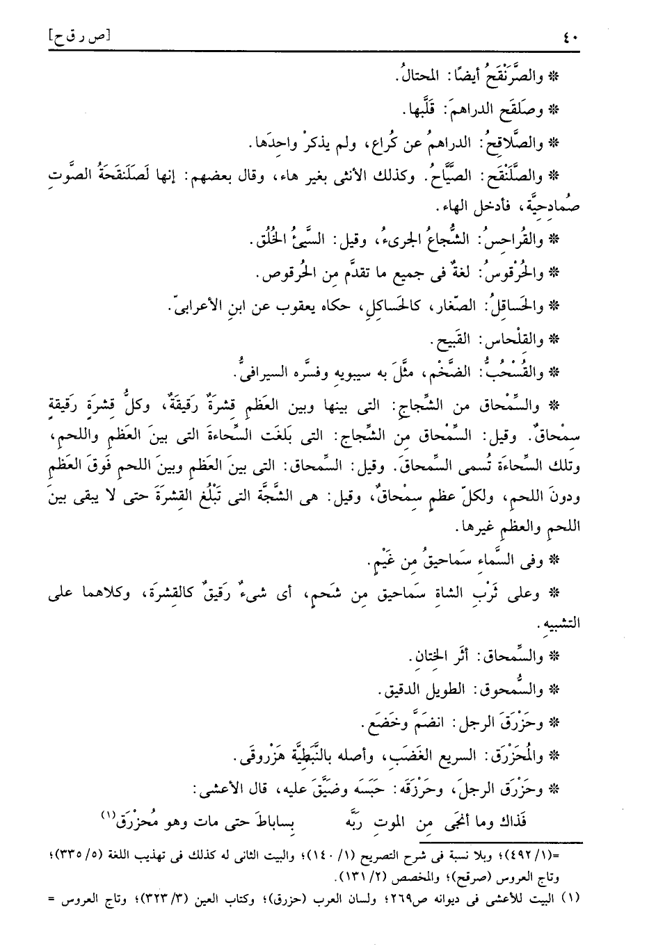 والقُراحِسُ: الشجاع الجريء، وَقيل: السَّيئ الْخلق.