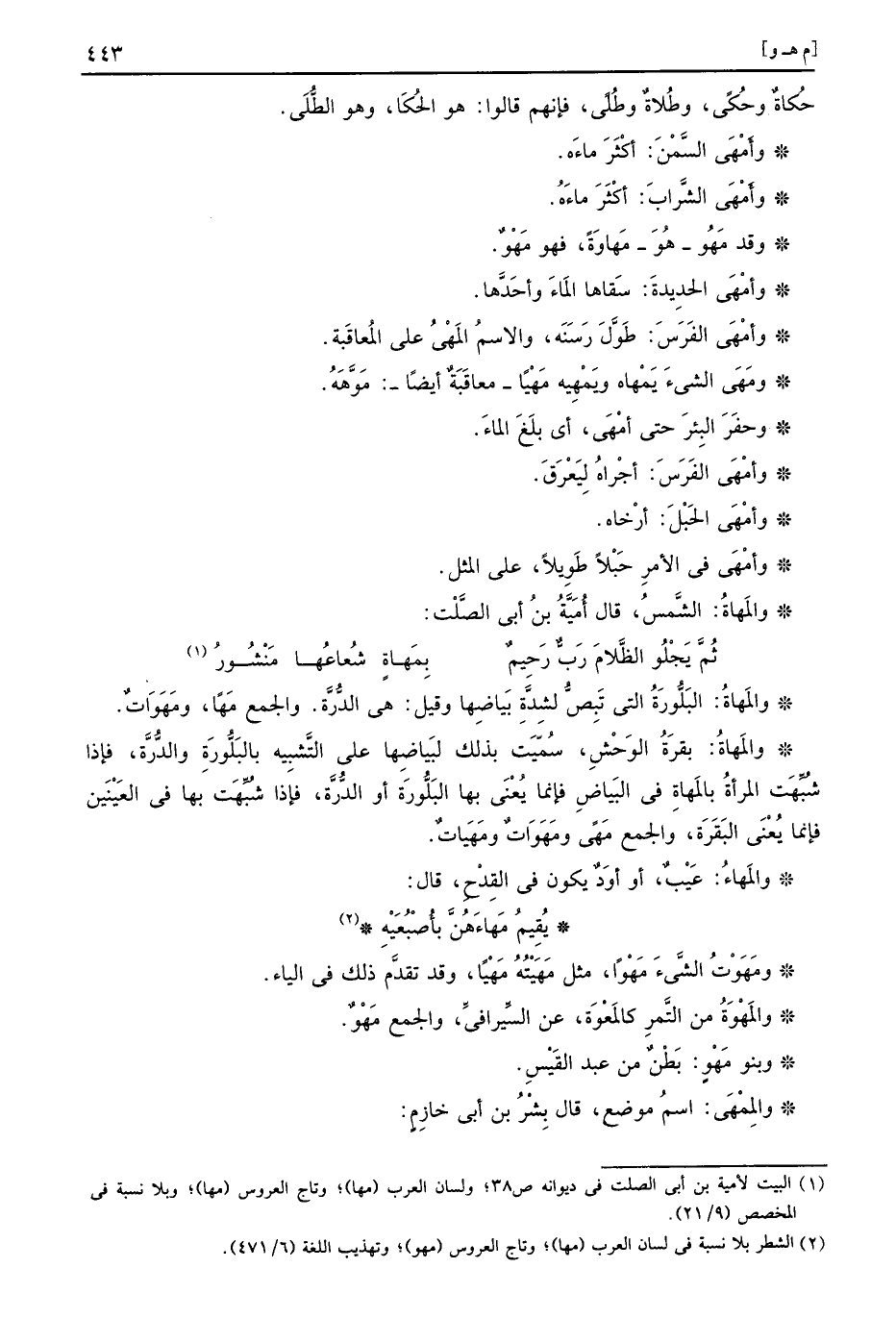 والمَهاةُ: الشَّمْس، قَالَ أُميَّة بن أبي الصَّلْت: