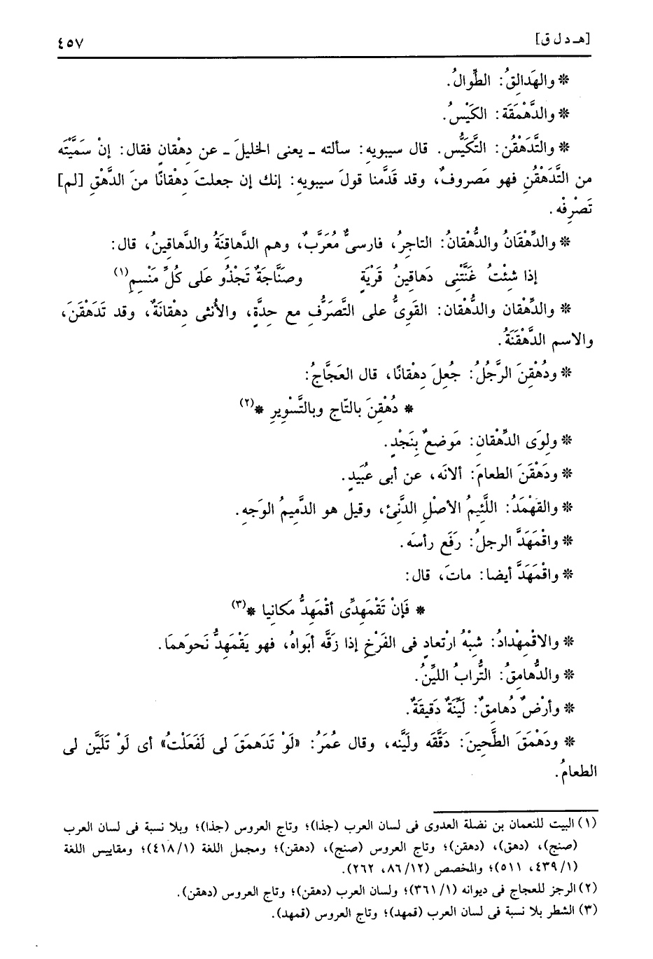 والدِّهْقَانُ والدُّهْقانُ: التَّاجِر، فَارسي مُعرب، وهم الدَّهاقِنَةُ والدَّهاقِينُ، قَالَ: