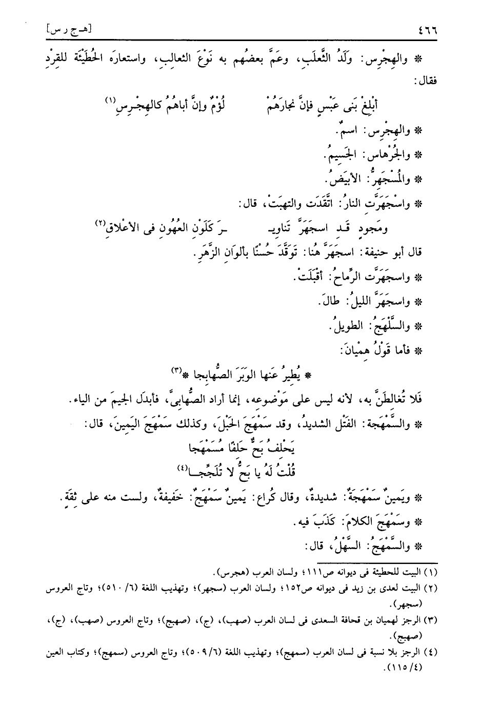 والهِجْرِس: ولد الثَّعْلَب، وَعلم بَعضهم بِهِ نوع الثعالب، واستعاره الحطيئة للقرد فَقَالَ: