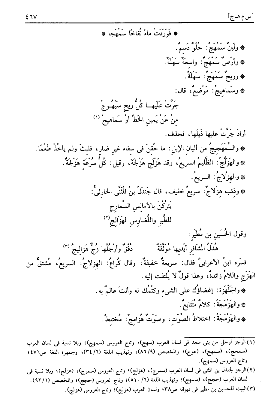 وذئب هزْلاجٌ: سريع خَفِيف، قَالَ جندل ابْن الْمثنى الْحَارِثِيّ: